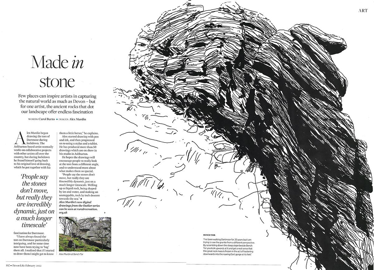 Alex Murdin is an environmental artist known for his collaborative, conceptual and activist public works across the UK over the past 20 years (ruralrecreation.org.uk). Lithicality is a recent personal project which explores a more aesthetic path to environmental empathy and action - walking, sensing and drawing stones, from the wild granite of the tors of Dartmoor to the feral liths briefly herded into circles, squares and lines.