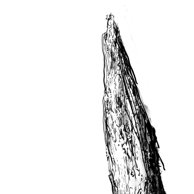 High upon a ridge is a granite stone from Dartmoor in an arc of transit, part of a lithic migration through heat, entropy, gravity and animal/plant processing. Maen is the Celtic word for stone. Digital drawing from a field trip in the summer of 2022.