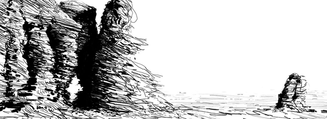 One of a set of 26 illustrations of the rock and water landscapes of Devon & Cornwall featured in ‘The Green Hill, letters to a son’ by Sophie Pierce. The book is about grief, trauma and loss, but also about finding joy after bereavement in the restorative power of the natural world.